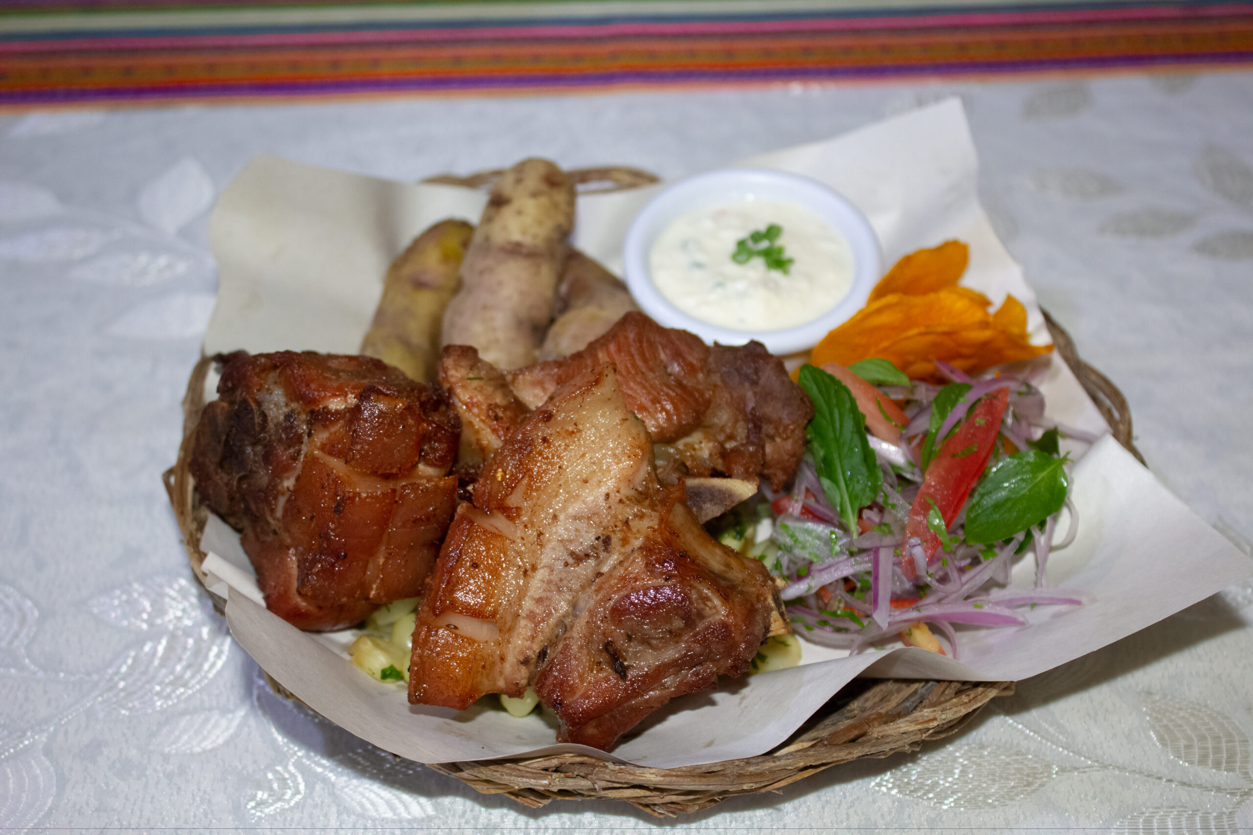 El chicharrón es un plato tradicional de la gastronomía andina, caracterizado por su carne tierna y sabrosa, con una textura crocante en el exterior. Es una especialidad que representa la riqueza culinaria de las comunidades altoandinas.